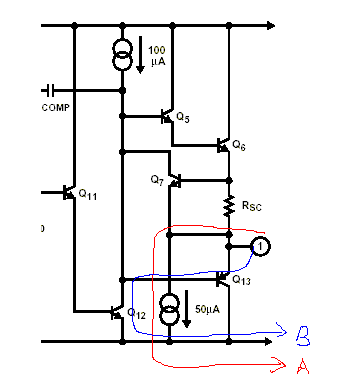 当灌电流较小,途中的50uA恒流源可以将其吸收,如图中红色A线